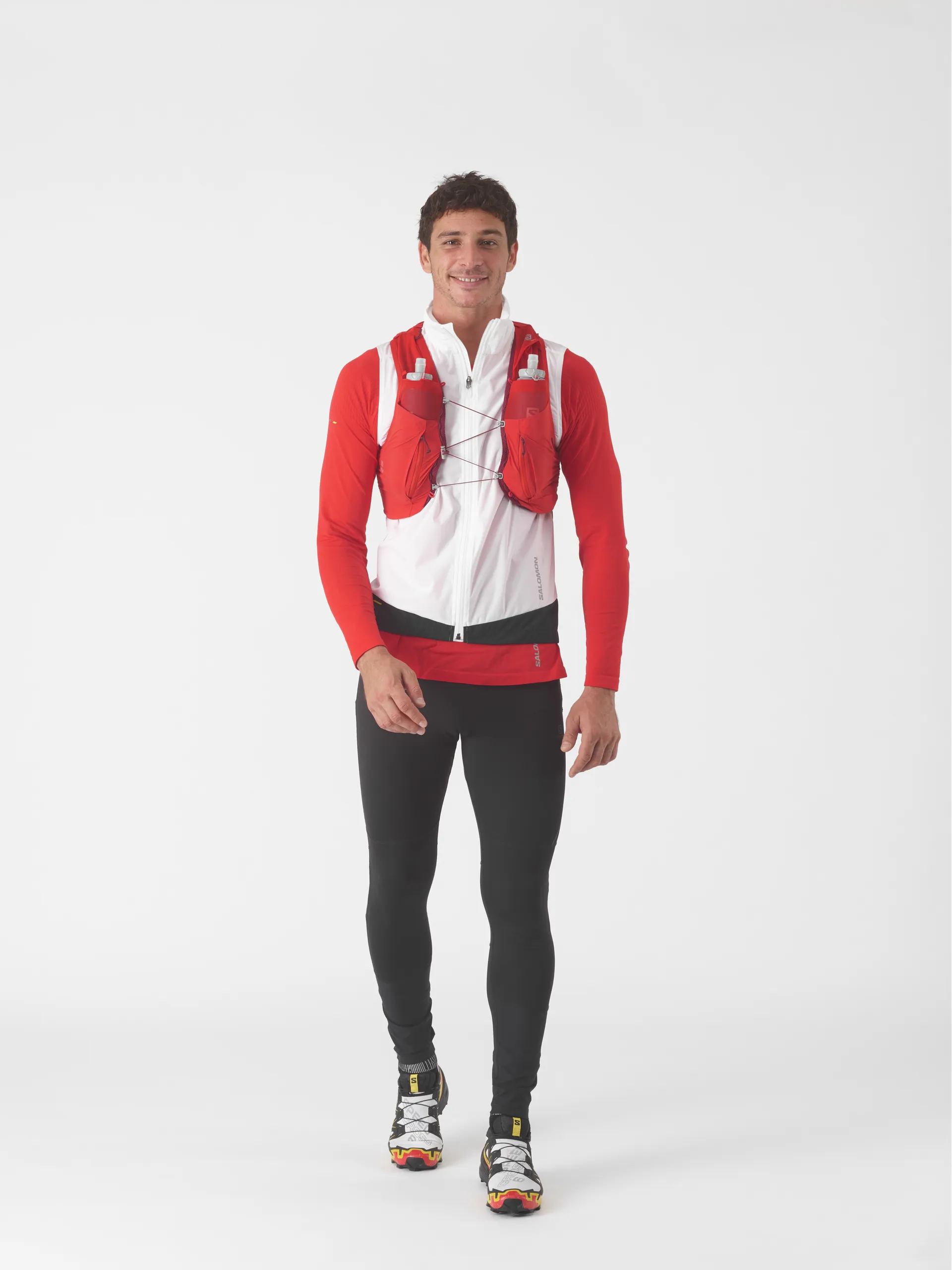 Tested in Salomon's labs, the main fabric delivers 4-way stretch for light muscle support and is made from recycled polyester fibers.